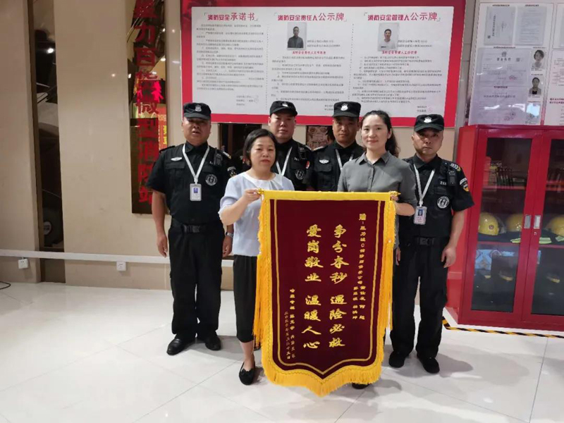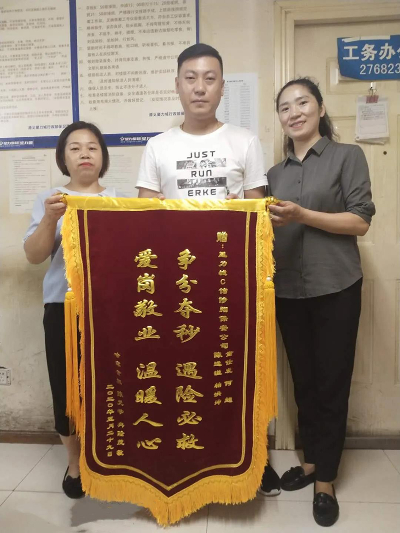 經(jīng)半個(gè)多月的治療,患者于2020年7月7日康復(fù)出院。出院后,患者在家屬的陪同下,將一面印有“爭(zhēng)分奪秒、遇險(xiǎn)必救、愛崗敬業(yè)、溫暖人心”的錦旗送至我公司駐點(diǎn)星力城保安隊(duì)員手中,并再三表示感謝。隊(duì)員們紛紛表示:“這是我們的份內(nèi)之事,我們的職責(zé)就是為業(yè)主和客人的安全保駕護(hù)航”。