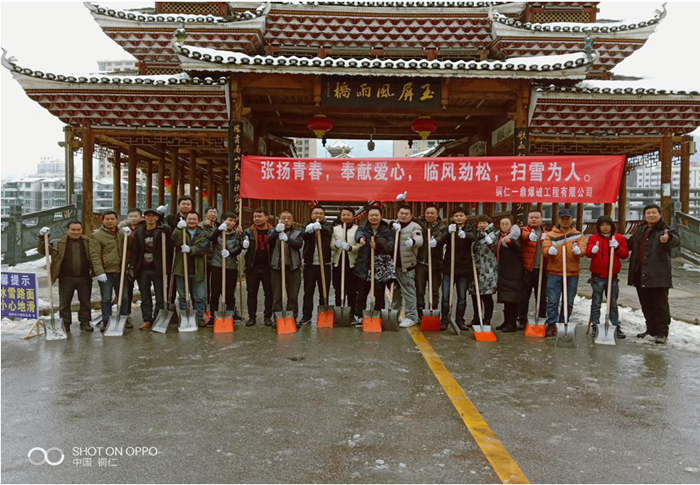 2018年12月29日晚間至12月30日白天,玉屏縣迎來(lái)立冬以來(lái)的第一場(chǎng)降雪。鵝毛般的大雪紛紛灑灑的落下,整個(gè)縣城猶如銀裝素裹,分外妖嬈!但是路面的積雪成冰,給市民出行帶來(lái)了諸多不便,為方便行人出行,31日上午,項(xiàng)目部行政人員和涉爆人員在項(xiàng)目部負(fù)責(zé)人的帶領(lǐng)下,開(kāi)展了義務(wù)掃雪除冰活動(dòng)。